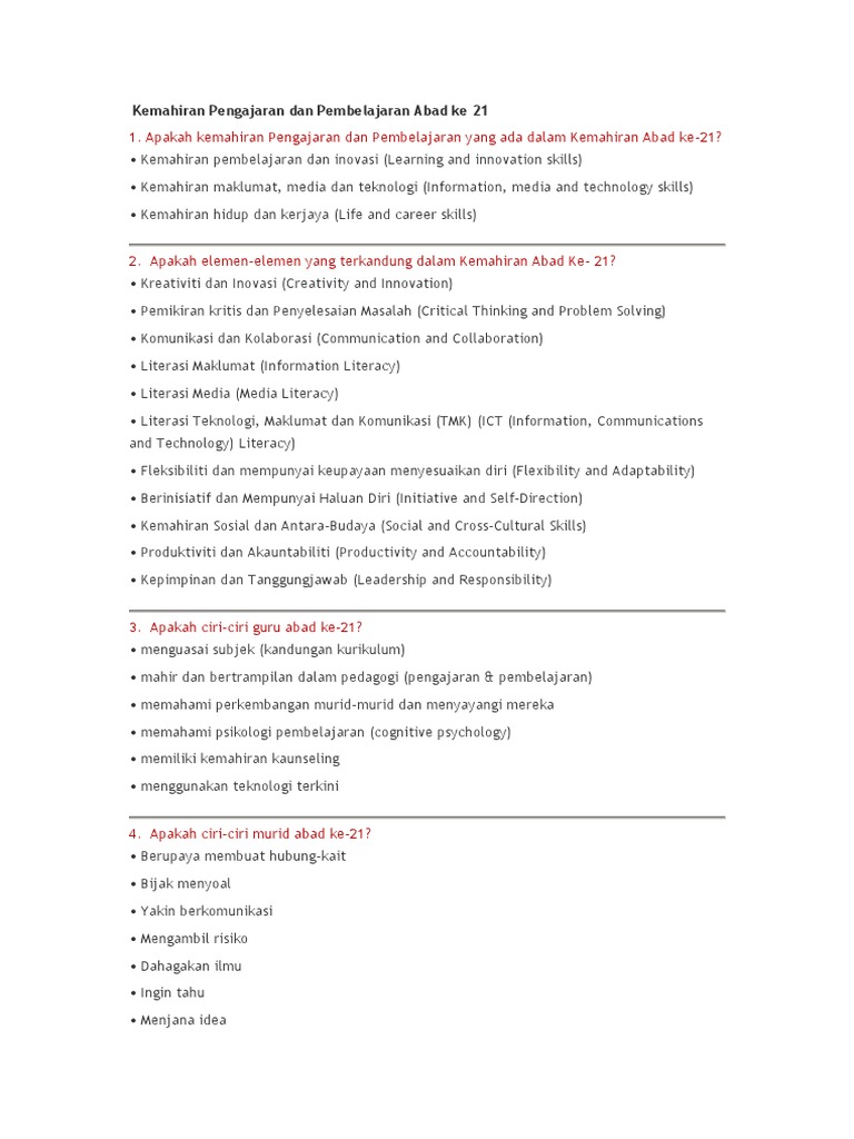 Pada abad 21 pendidikan telah mengalami pergeseran atau perubahan paradigma pendidikan, yaitu: Begitulah, guru dalam pembelajaran abad 21 dituntut mengenali dan menguasai pembelajaran berbasis tik. 0 ratings0% found this document useful (0 votes). Let's change the world together. 1.0 pendahuluan kementerian pendidikan malaysia bertekad meningkatkan kualiti kemenjadian murid selaras dengan aspirasi meletakkan sistem pendidikan malaysia dalam kelompok sepertiga teratas di dunia. Mohd ariffin bin abdul latif sipartner +. Abad 21 adalah abad digital. Abad ke 21 sdbl related files Pembelajaran abad 21 adalah pembelajaran yang dirancang untuk generasi abad 21 agar mampu mengikuti arus perkembangan teknologi terbaru. Seminar nasional pembelajaran abad 21 pusdiklat kemdikbud, sawangan, 27 april 2018. Terutama pada ranah komunikasi yang telah masuk ke sendi kehidupan, maka dari itu siswa diharuskan untuk bisa menguasai empat keterampilan. 47 aktiviti ini sesuai dan boleh dilaksanakan dalam aktiviti pembelajaran dan pemudahcaraan (pdpc). Upaya dini yang harus dilakukan oleh pegelola.